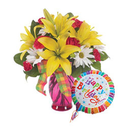 Beautiful Basket of Mix Carnation and Lilium along with Message foil Ballon as per the Customer Choice that need to mentioned while placing Your Order.