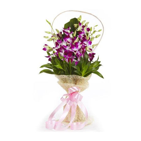 Bunch made with 10 Purple Orchids wrapped with Cellaphin sheet. Simply the best.